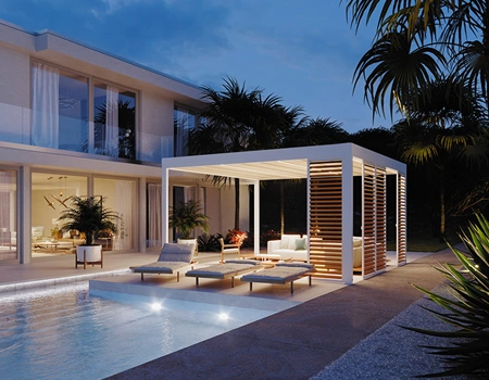 Lamelių pasvirimo kampas lengvai reguliuojamas pagal individualius poreikius – uždarius jos apsaugo nuo saulės, lietaus ar sniego, o atvėrus leidžia mėgautis natūralia šviesa ir efektyvia ventiliacija.